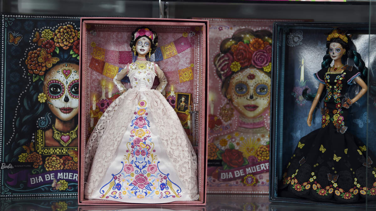 Barbie is celebrating Hispanic Heritage Month by introducing their 2022 Dia De Muertos collectible dolls. Mexican designer Benito Santos designed the barbie doll with a black dress and a cropped bolero jacket. The other collectible dolls include a Ken doll dressed as a charro with sugar skull face paint and a doll with a purple ruffled dress and headband. Check them out below!