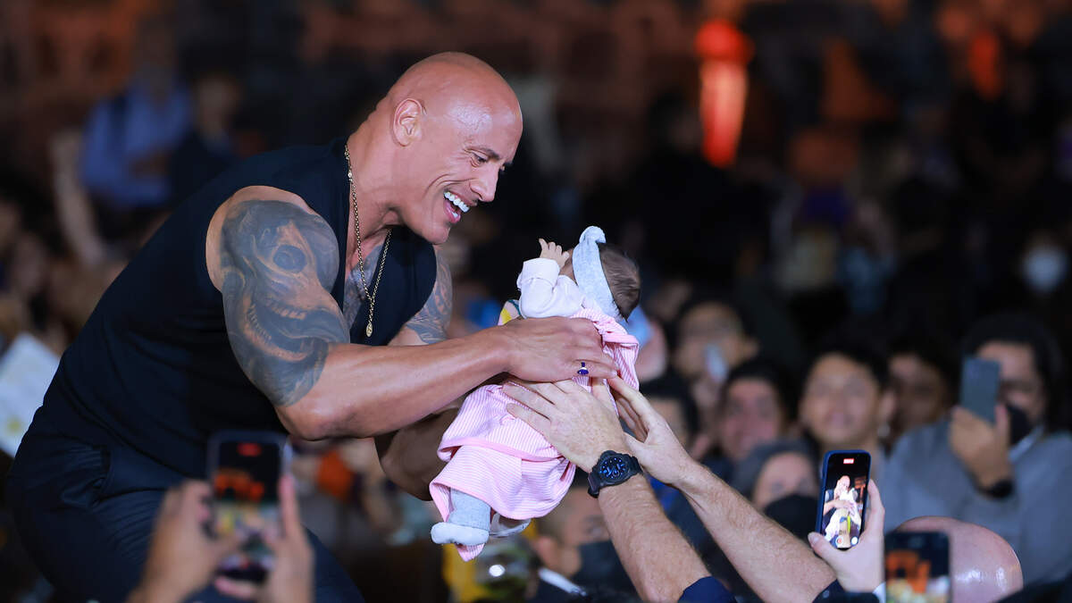 The Rock's tiniest fan crowd surfed into his arms during his "Black Adam" movie tour stop in Mexico. photo: getty images
